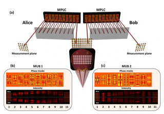 High-dimensional quantum key distribution (QKD) offers higher information capacity and stronger resilience to noise compared to its binary counterpart. However, these advantages are often hindered by the difficulty of realizing the required high-dimensional measurements and transformations. Here, we implement a large-scale multi-plane light converter (MPLC) and program it as a high-dimensional mode sorter of spatial modes for QKD. Using the MPLC, we demonstrate five-dimensional QKD with six mutually unbiased bases and 25-dimensional QKD with two mutually unbiased bases in the same experimental setup. Furthermore, we propose a construction of pairs of mutually unbiased bases that are robust to experimental errors, with measurement complexity scaling only with the square root of the encoded dimension. This approach paves the way for QKD implementations in higher dimensions.